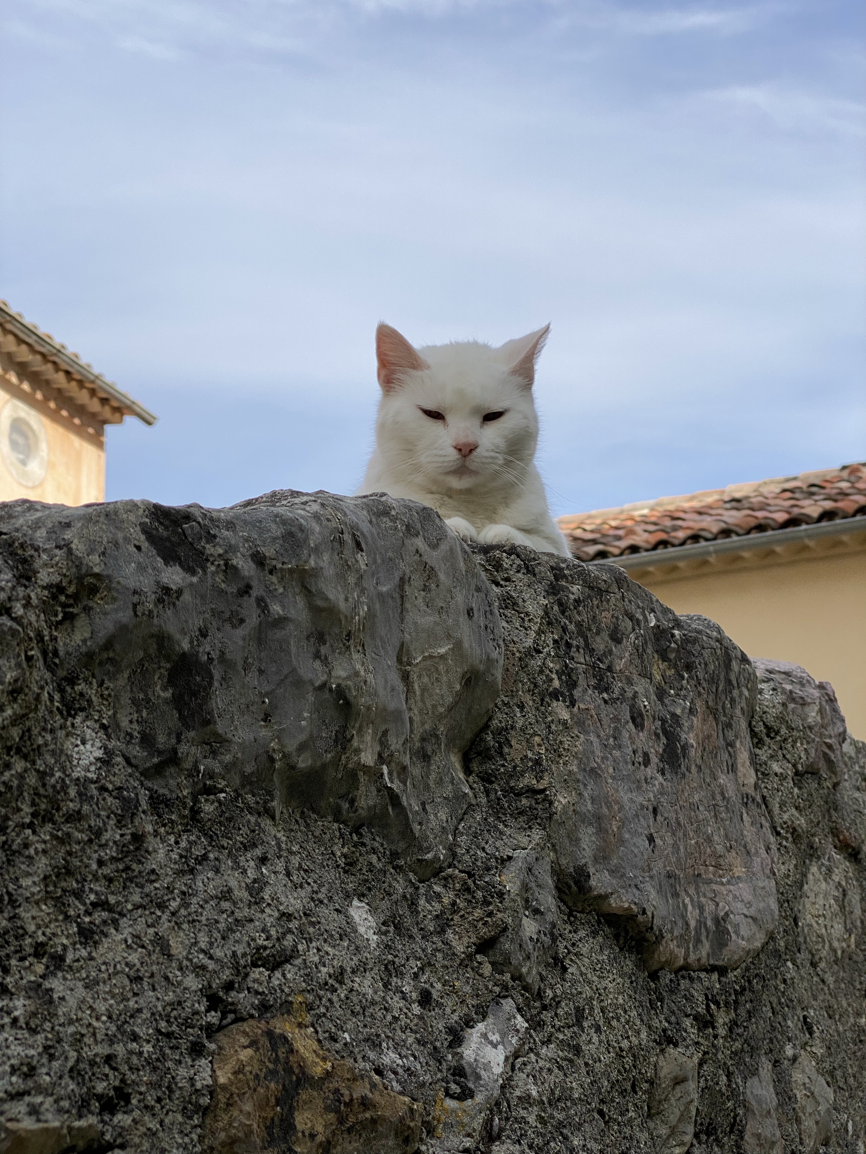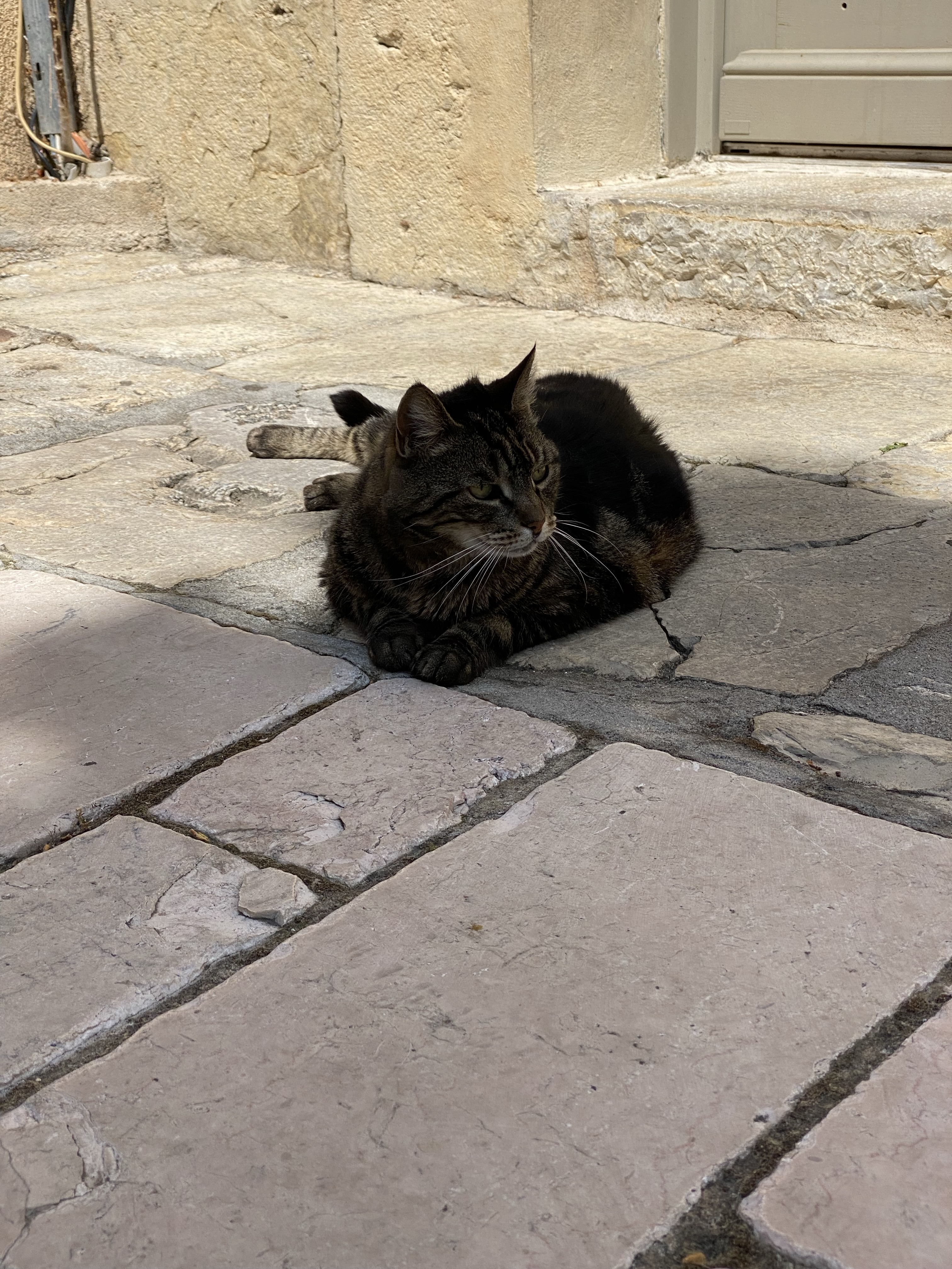 In France, I traveled with my mom, who really hates cats in addition to being very, very allergic to them. The French cats were much bolder than the Israeli cats as they crept above us on medieval stone walls in vaguely threatening ways.