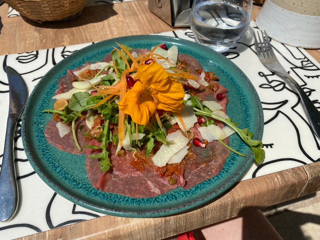 Above, my mom is smiling right before we dug into a delicious lunch. I can’t remember the name of the restaurant or where we were, but I had a mouth-watering form of steak tartare (at least that’s what I think it was!) All I know for certain is that the meat pictured above was raw, with slices of Parmesan cheese, pomegranate seeds, and carrots and lettuce to top it all off.