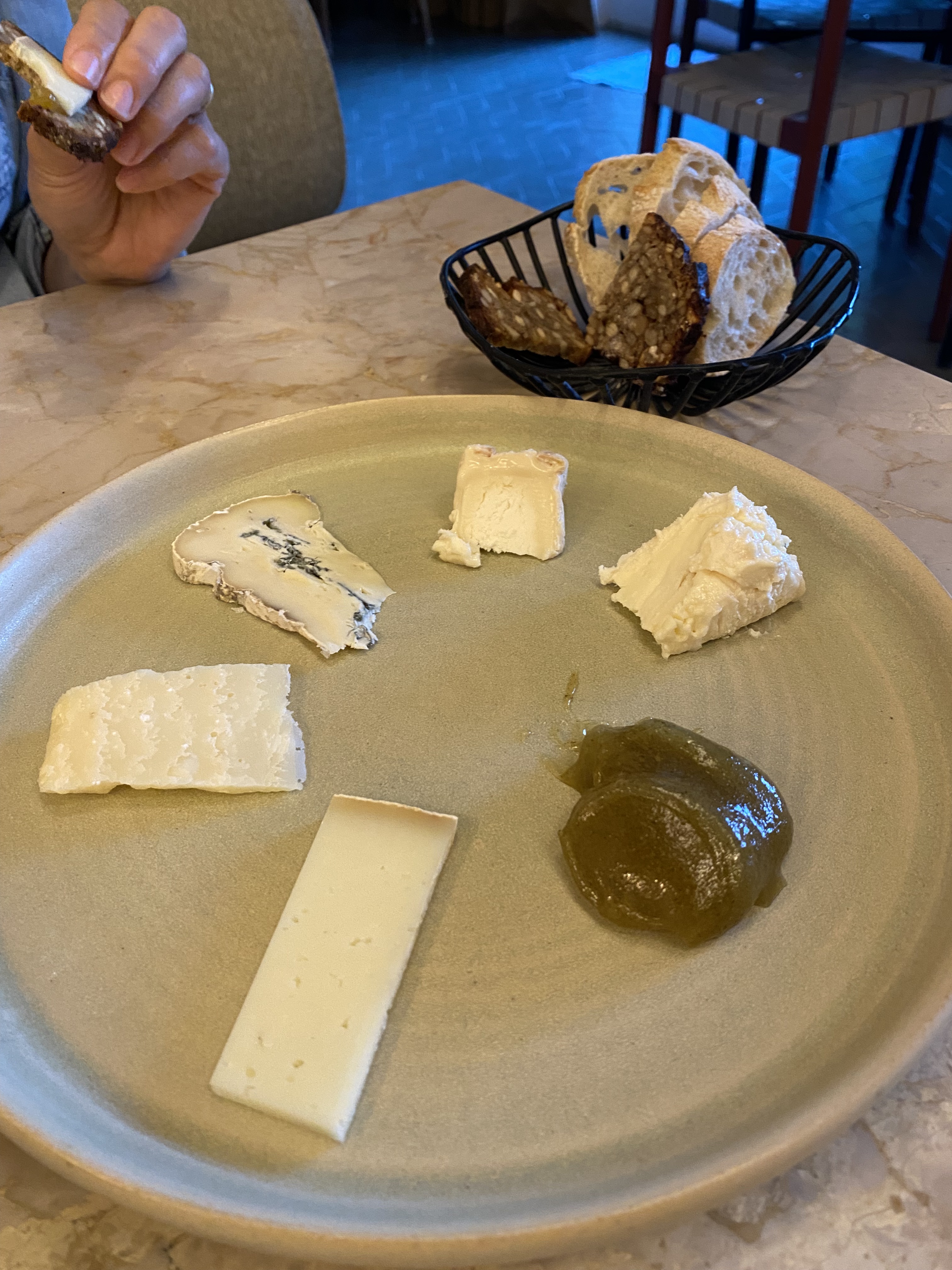 The three photos above from our first dinner in the Bargemon area. In addition to crispy, warm bread with butter, we both chose salads for the first course. I had asparagus with cheese, lettuce, and some kind of crumble, while my mom ate a Caprese-style salad. We both decided upon the steak filets (possibly filet mignons?) for the main course before sharing a gorgeous mousse/cake.